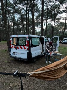 Pour cela, j’ai aménagé un van, un petit Renault trafic de 2013 avec lequel je suis parti en itinérance sur les routes d’Europe. J’ai toujours été un grand adepte de la sobriété, et avec ce périple, je voulais en déterminer les limites. En ville, nous avons presque tout à portée de main, l’électricité, l’eau courante, le gaz, presque à profusion si ce n’est que la limite devient un argument financier. J’ai donc réalisé un aménagement sommaire, priorisant l’isolation thermique et ajoutant quelques meubles construits avec des planches de bois trouvées dans mon garage. J’ai voulu récupérer plutôt que d’acheter, pour un résultat similaire. Mes équipements étaient tout aussi simples : une batterie de 500 Wh et un panneau solaire de 110 W pour être indépendant en électricité, un réchaud à gaz de camping pour la cuisine. Je n’ai pas pris de réfrigérateur ou de chauffage pour une question de dimensionnement du système électrique ou simplement de place. Enlevons du confort ! Avec ce manque d’accessoires je voulais voir ce qui allait me manquer le plus, distinguer le nécessaire et le superflu.